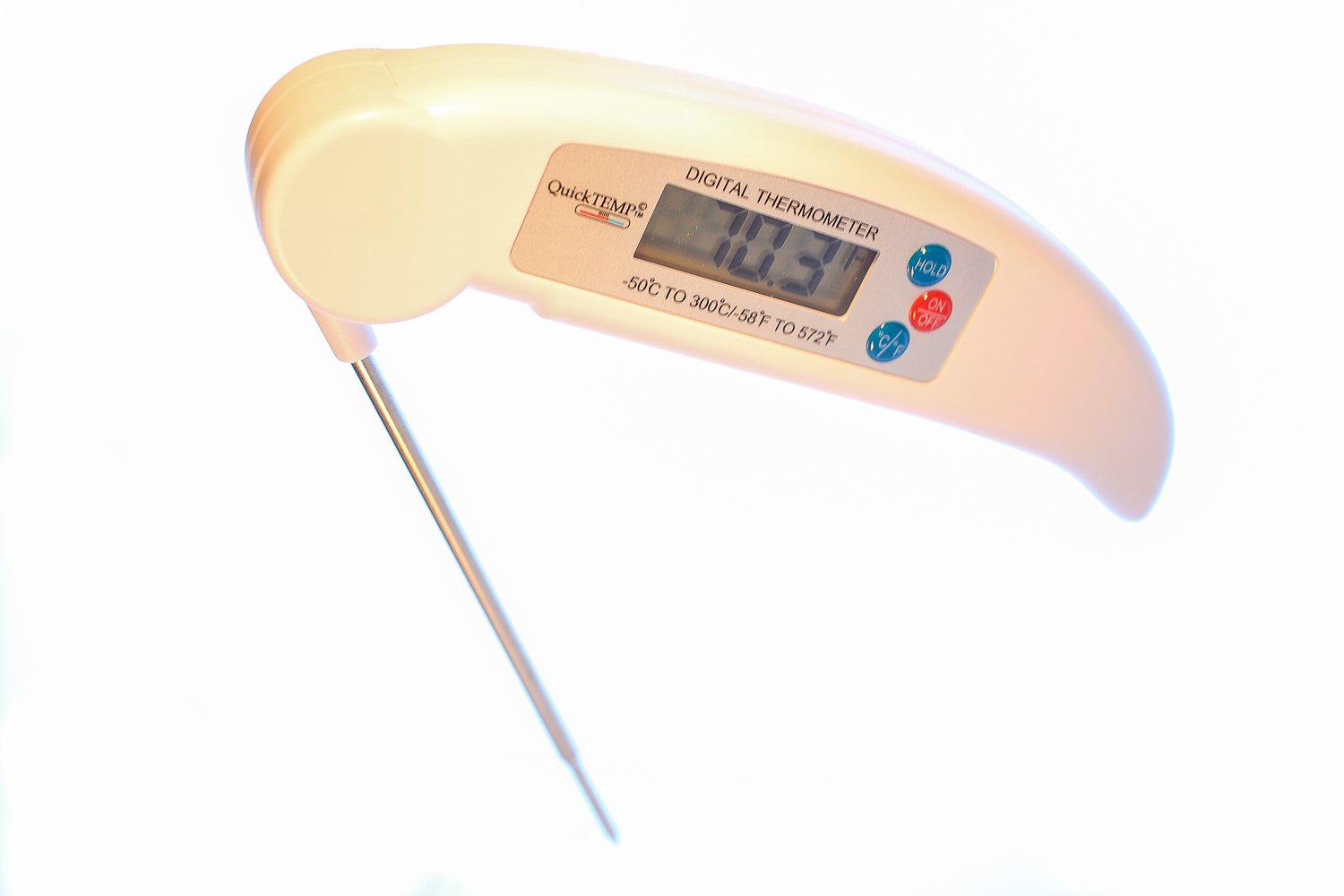 The other awesome product he used is the Digital Meat Thermometer by QuickTemp. This has the most accurate gauge I have ever used in the kitchen. I was amazed. This is so sensitive it can tell the temp in the room. Aron used it with the smoker on his Boston Butt, St Louis style ribs and the Baby Back ribs, I turned it on bringing it to him and the readout was increasing. I ran it under cool water to see if what I was seeing was correct. I took it out of the water and there it was. 73.4 That's how warm it was in my kitchen. I went outside to the thermometer it's a mercury kind. It read 66. The Quicktemp read 67.2 Every single thermometer I checked abound the house, the Quick temp Digital Meat Thermometer was right on it.